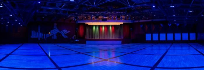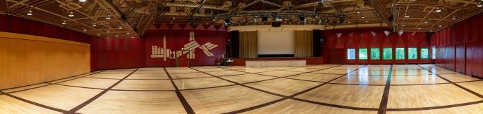 Sie verfügt über eine dreiteilige Sporthalle mit 2 Tribünen für insgesamt 800 Besucher (Maße 50 Meter auf 31,75 Meter). Der 558 m² große Kultursaal bietet Platz für: 1000 Personen ohne Bestuhlung