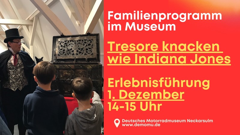 Wer hat nicht schon von geheimen Türen und versteckten Mechanismen aus Filmen wie „Jäger des verlorenen Schatzes“ oder „Da Vinci-Code“ geträumt? Erleben Sie jetzt diese faszinierenden Techniken hautnah! Unsere Erlebnis-Führung lädt Sie ein, aktiv mitzumachen: Ausgestattet mit speziellen Handschuhen und unter fachkundiger Anleitung entschlüsseln Sie geheime Mechanismen. Zahlreiche Trickschlösser und komplizierte Riegelwerke zeigen uralte Sicherheitstechniken, die Truhen und Tresoren ihre Geheimnisse entlocken. Warum teilnehmen? Sie werden aktiv in die Entschlüsselung einbezogen und entdecken kunsthandwerkliches Können sowie kreative Konstruktionen in jedem Exponat. Anmeldung: 07132-353800.
