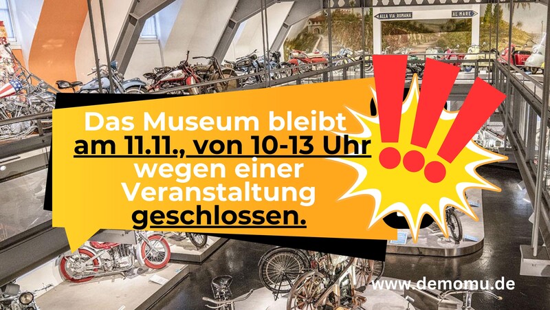 Am 23.10. bleibt das Deutsche Motorradmuseum von 10-14 Uhr wegen einer Veranstaltung geschlossen.