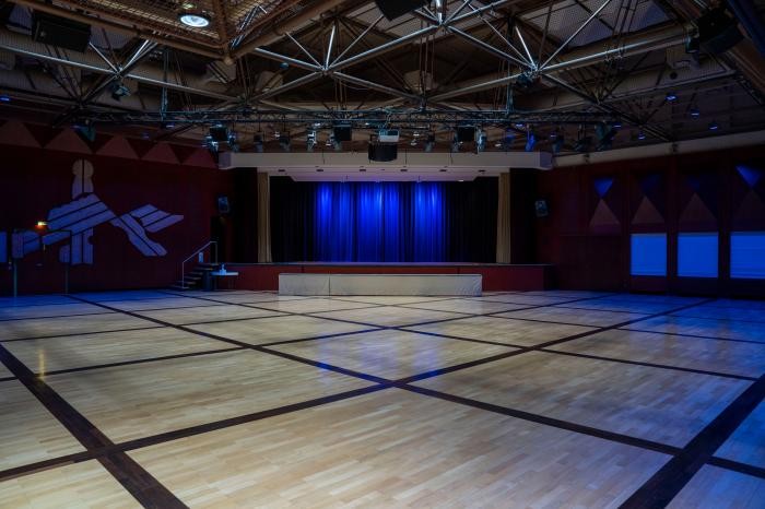 Außerdem verfügt er über eine 100 m² große Bühne. Die Foyerflächen befinden sich auf zwei Ebenen mit jeweils 455 m² bzw. 125 m².