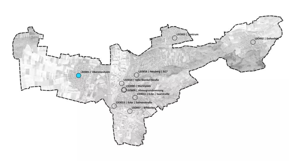 Im Innenbereich Obereisesheim gelegen, repräsentiert der Sensor die Situation eines größeren Dorfes mit umgebenden Ackerlandbau und verstärkter Infrastruktur. Er steht stellvertretend für die Raumcharakteristik: