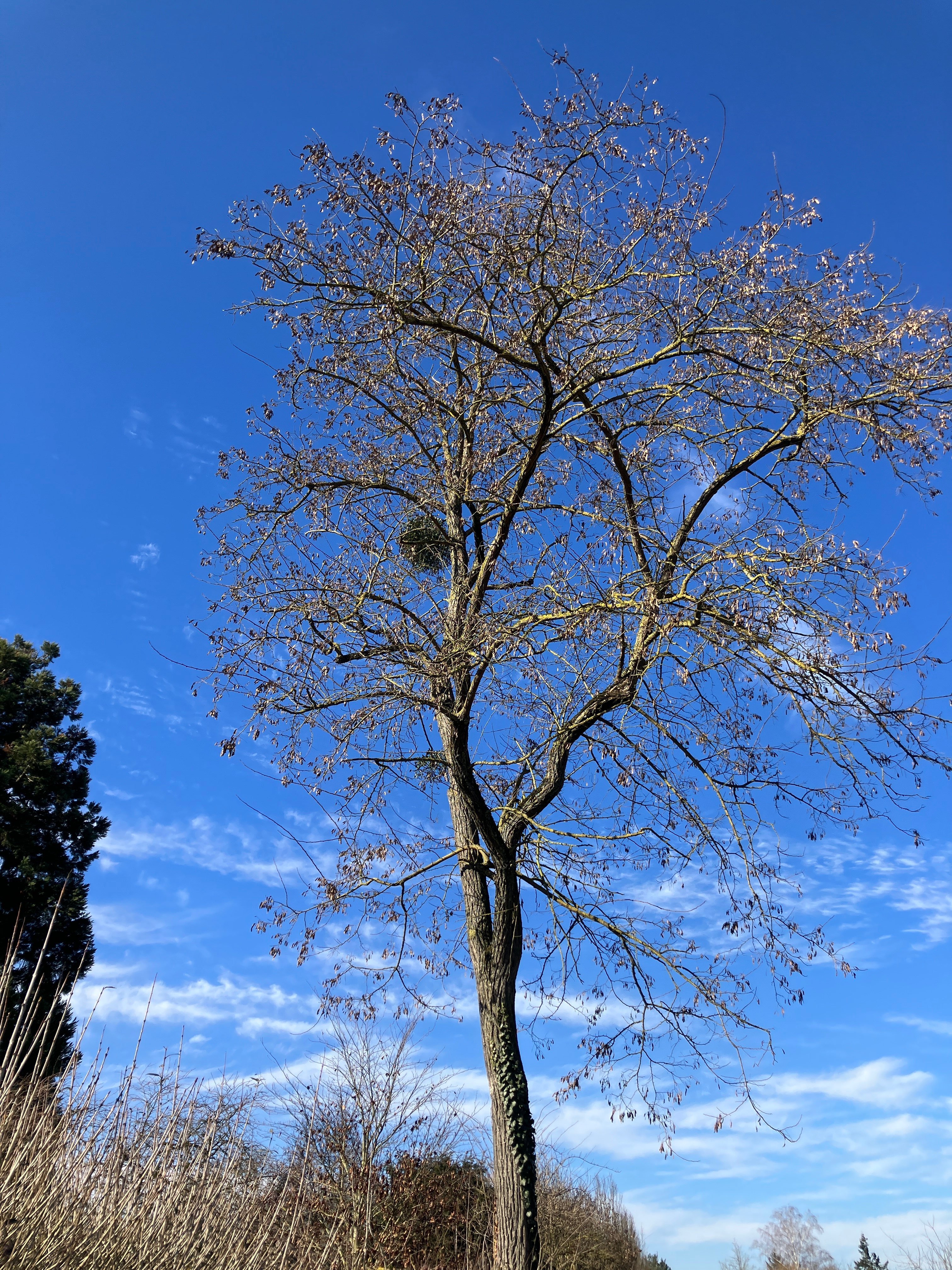 Außerdem wurden im Gewann Kalben und hinter dem Dornetwald im Winter 2024/2025 und im Winter 2025/2026 die Bäume auf Misteln kontrolliert. Wo Misteln vorgefunden wurden, wurden die Grundstücksbesitzenden mit einem Schreiben darauf aufmerksam gemacht und gebeten diese zu entfernen. Warum diese Maßnahme so wichtig ist, erfahren Sie in nachfolgendem Dokument. Die Zahl der vorhandenen Misteln konnte durch die Aufmerksamkeit auf das Thema auf weniger als die Hälfte reduziert werden. Der nächste Kontrollgang soll im kommenden Winter erfolgen.