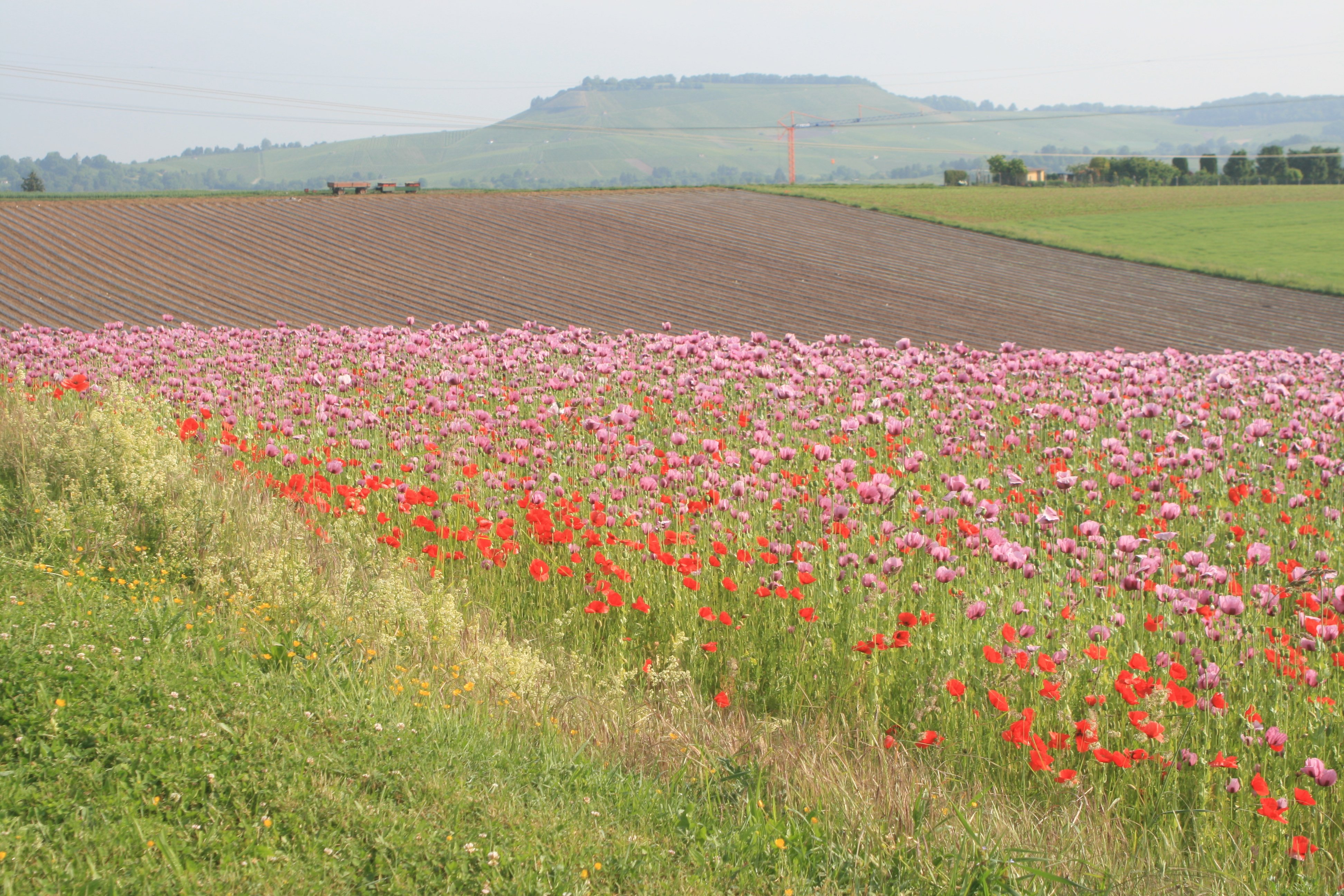 Das Programm zum Schutz der Tier- und Pflanzengemeinschaften der Feldflur wurde 2013 in Obereisesheim gestartet. Mithilfe von fünf bis zehn Meter breiten Blühstreifen, die mit regionalem Wildblumensaatgut eingesät werden, wird durch die Pflanzenvielfalt ein neuer und wichtiger Lebensraum für Insekten, Kleinsäuger und Feldvögel geschaffen. Nicht zuletzt können die Ackerrandstreifen die Böden vor Erosion schützen. In Neckarsulm beteiligen sich acht Flächeneigentümer/-innen und Pächter/-innen an dem Ackerrandstreifenprogramm und bilden eine Fläche rd. 5 ha blütenreicher Feldflur.