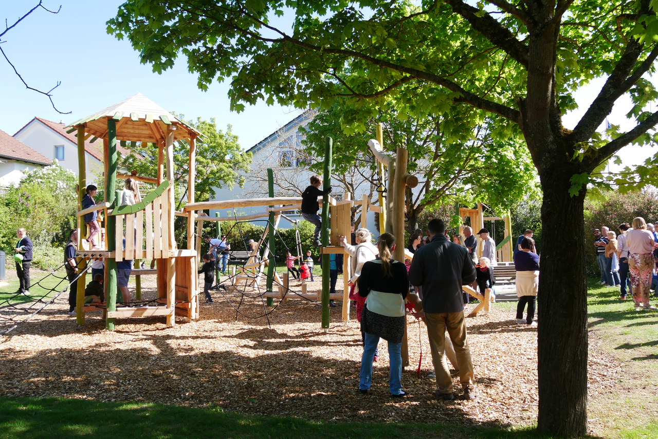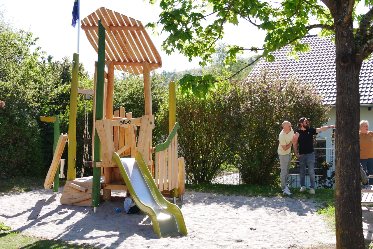 Auch die Anwohner waren an der Neugestaltung beteiligt. Sie wünschten sich besseren Schutz vor Starkregen. So entstand in direkten Gesprächen zwischen engagierten und aktiven Bürgerinnen und Bürgern und der Stadtverwaltung eine pragmatische Lösung, die einen attraktiven neuen Spielplatz mit wirksamen Schutzmaßnahmen gegen Starkregen verbindet.