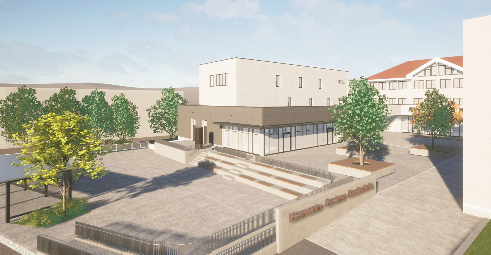 Direkt im Anschluss an die Gebäudesanierung wird der vordere Schulhof neugestaltet.