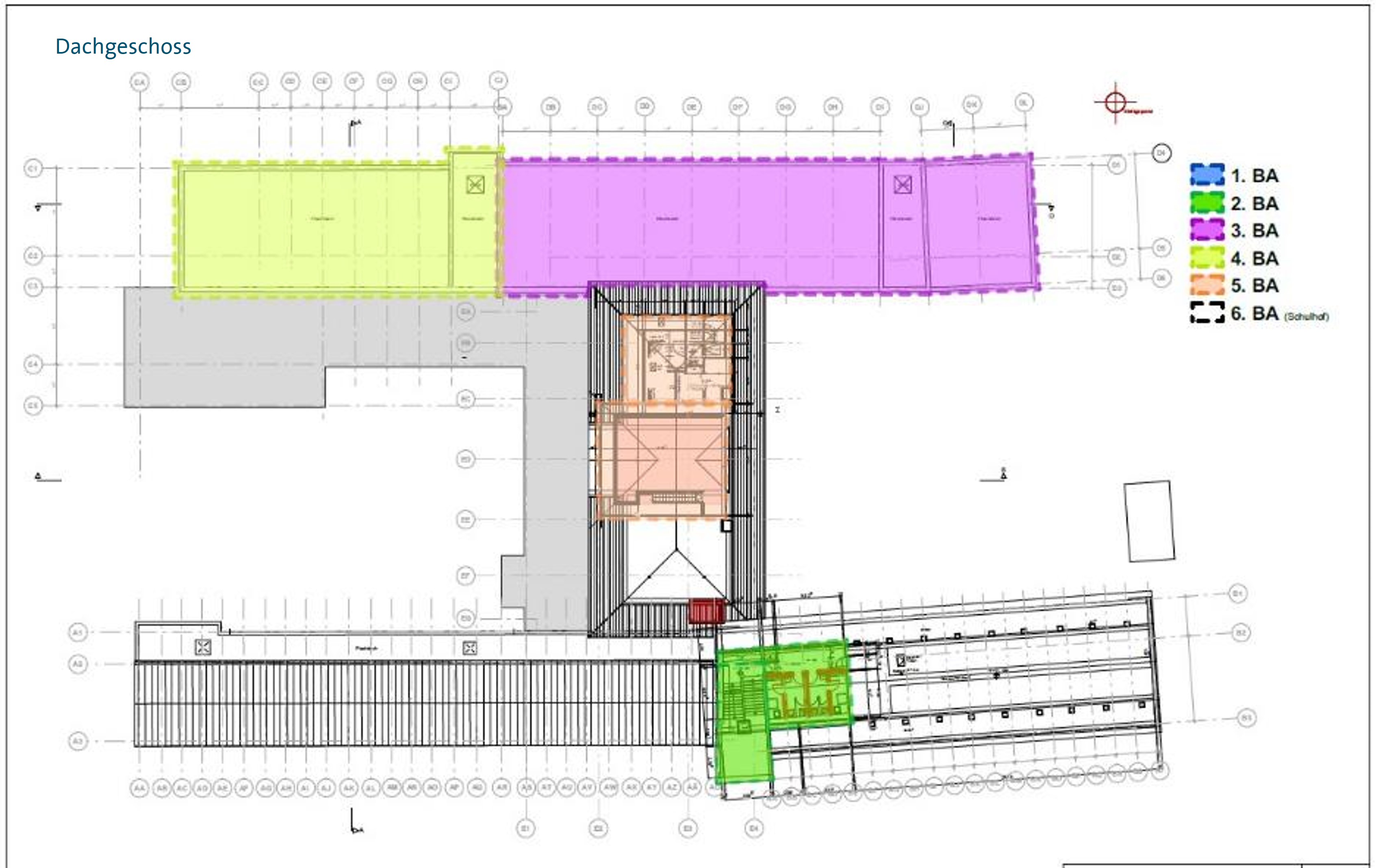 Der Beginn des 5. und letzten Bauabschnitts ist für Juni 2026 vorgesehen. In diesem Abschnitt wird der Mittelbau vom Untergeschoss bis in das 2. Obergeschoss umfassend saniert.