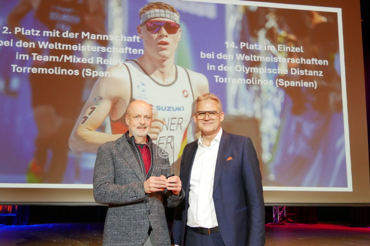 Die Ehrung für den Sportler des Jahres nahm der Leiter der Abteilung Triathlon, Lothar Edelmann, stellvertretend für Jan Diener in Empfang. Der erfolgreiche Triathlet befand sich zum Zeitpunkt der Sportlerehrung auf dem Weg zur World Triathlon Championship Series 2025 in Abu Dhabi. 2024 war für Jan Diener ein Erfolgsjahr mit sehr guten Ergebnissen bei Wettkämpfen in Torremolinos, Spanien (14. Platz Weltmeisterschaft – Olympische Distanz und 2. Platz Weltmeisterschaft – Team-Mixed Relay) sowie in Balikesir, Türkei (3. Platz Europameisterschaft – Supersprint und 2. Platz Europameisterschaft – Team-Mixed Relay).