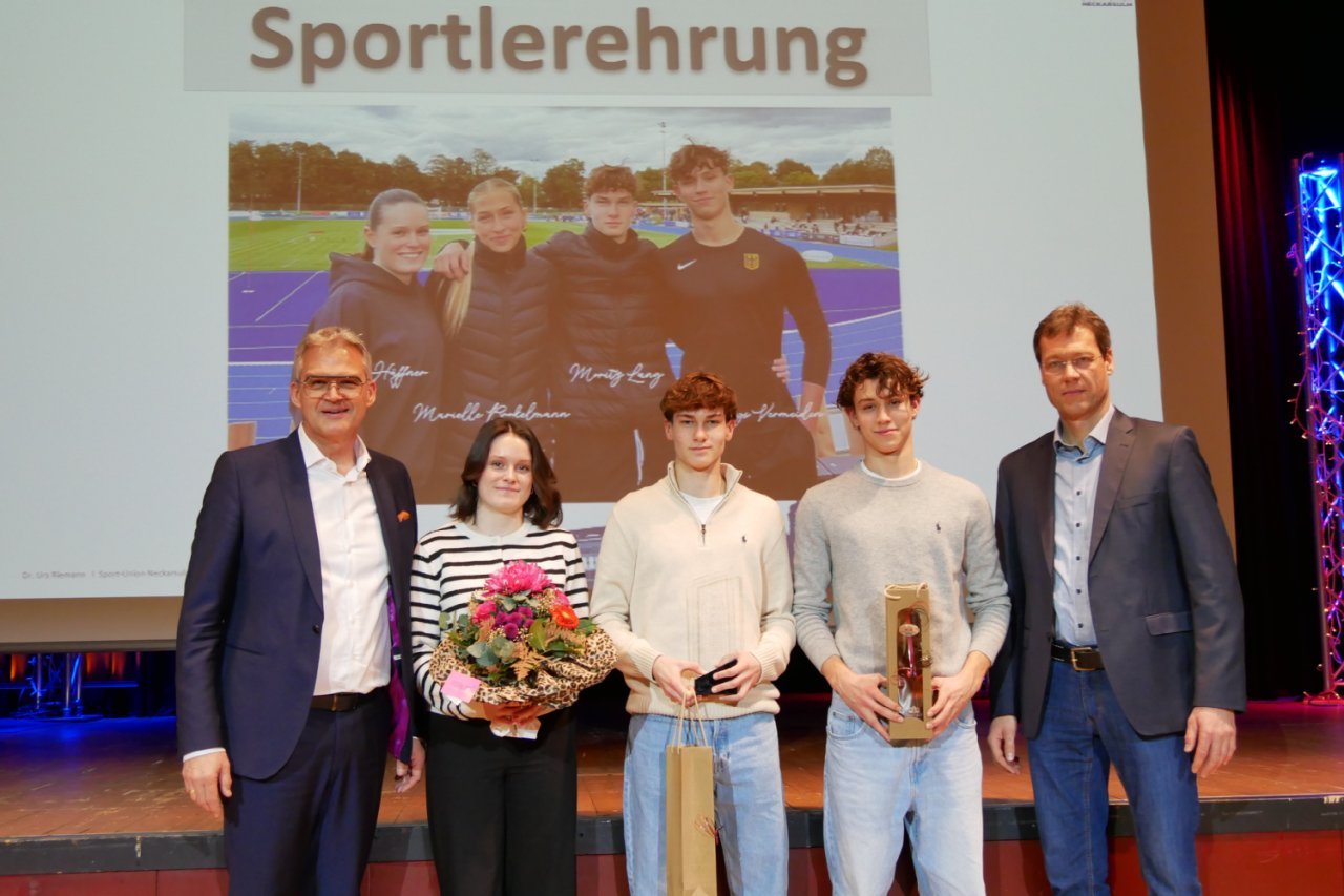 Goldmedaillen überreichte Steffen Hertwig an Sportlerinnen und Sportler in den Disziplinen Boxen, Handball, Kanu, Karate, Leichtathletik, Ringen, Schneeschuhlaufen, Schwimmen, Tischtennis, Triathlon, Volleyball sowie erstmals im Cheerleading und Blasrohrschießen. Die meisten Athletinnen und Athleten traten für die Sport-Union Neckarsulm an. Sportliche Erfolge erzielten auch der VfL Obereisesheim (Ringen), der Sportclub Amorbach e.V. (Karate), die Bunte Sportgemeinschaft (BSG) Neckarsulm e.V. (Schwimmen und Schneeschuhlaufen) und die Schützengilde Neckarsulm. Fast die Hälfte der Ehrungen ging an Kinder, Jugendliche und Junioren. „Dies unterstreicht den hohen Stellenwert des Sports in unserer Gesellschaft und die hervorragende Jugendarbeit in unseren Vereinen“, bekräftigte OB Hertwig. „Der Sport hat eine immense Bedeutung für unsere Gesellschaft und für die persönliche Entwicklung jedes Einzelnen. Er fördert nicht nur die körperliche Gesundheit, sondern auch wichtige soziale Werte wie Teamgeist, Fairness und Durchhaltevermögen.“